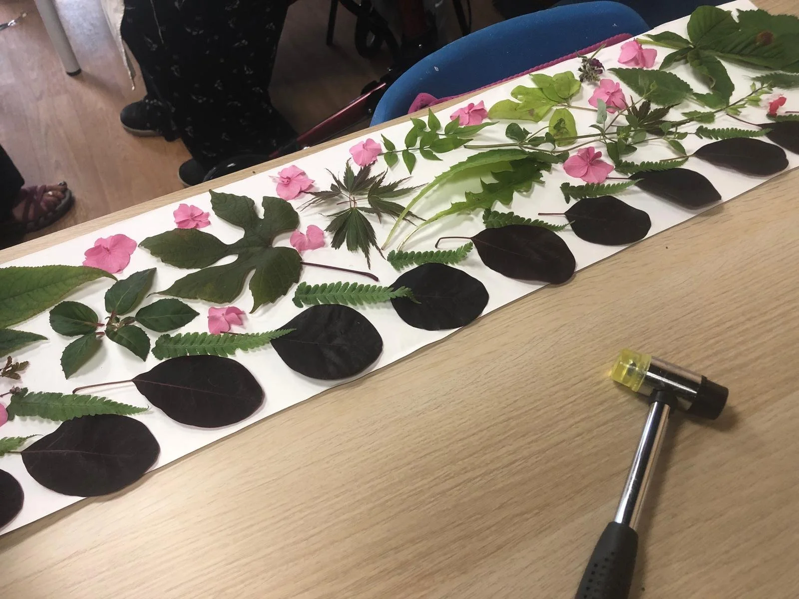 Participants embark on a sensory tour of the community allotment site in full bloom to identify the myriad wildflowers, plants, weeds, flowers, and vegetables, which we will then gather to use during the crafting sessions.